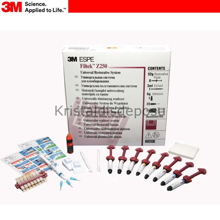 8 Adet 4g tüp(A1,A2,A3,A3.5, B3, C2,D3,UD), 3ml Scotchbond Universal Etchant, 6g adper Single bond2, 25 uç, 25 aplikatör uç, 25 disc ve diğer aksesuarlar